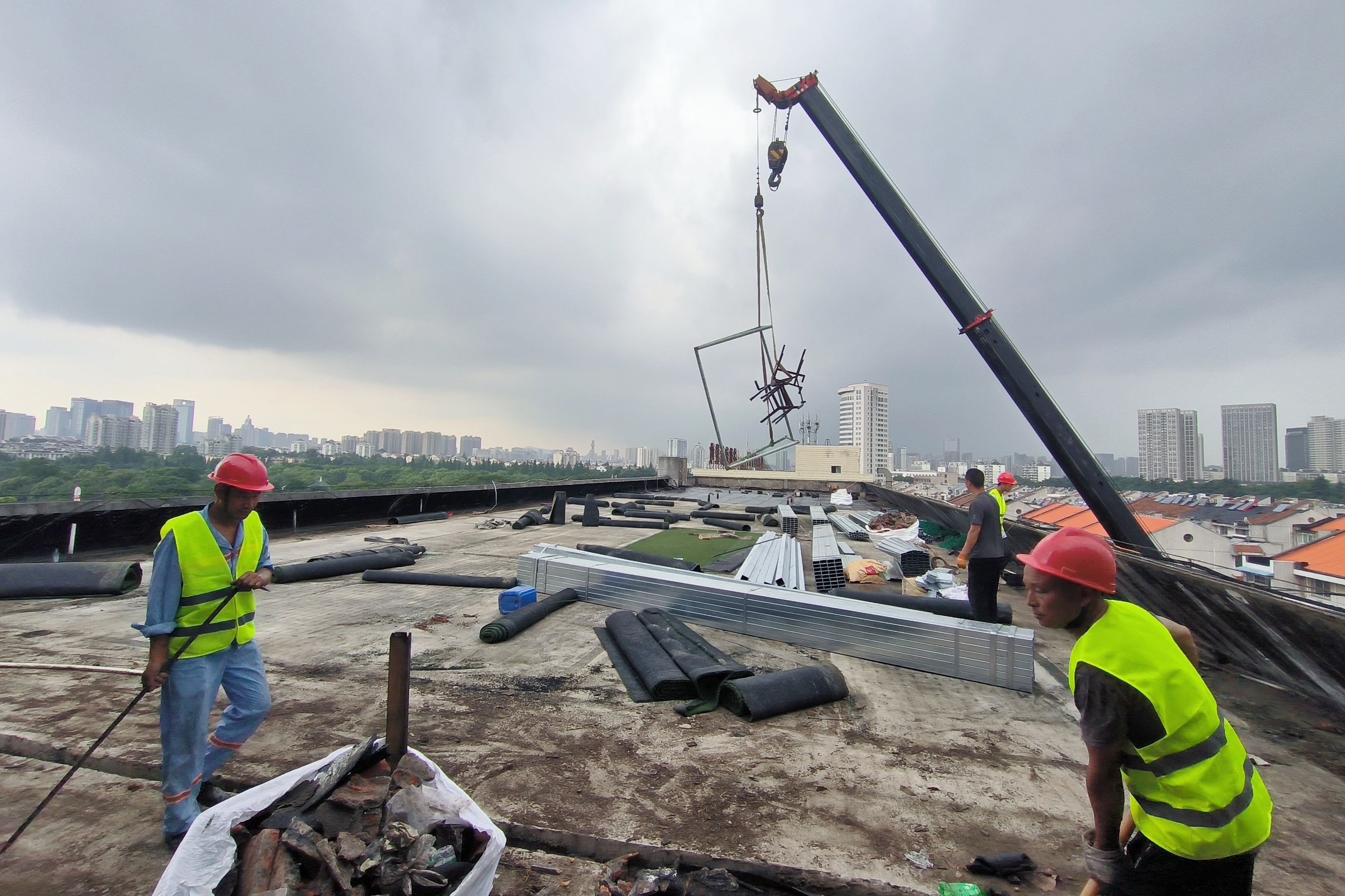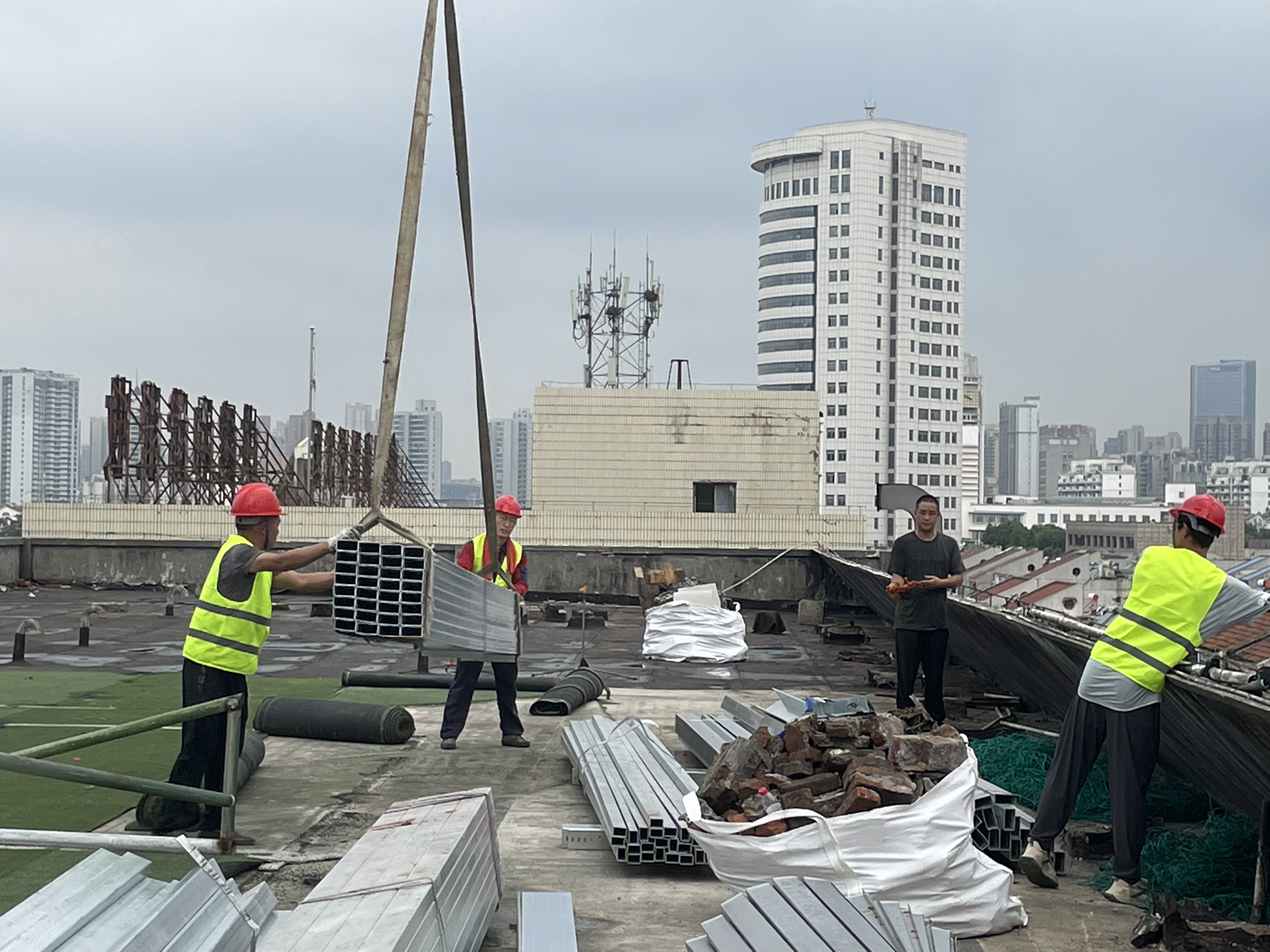 夏日來臨,機器轟鳴。日前,公司樓頂光伏電站建設工程全面開工。