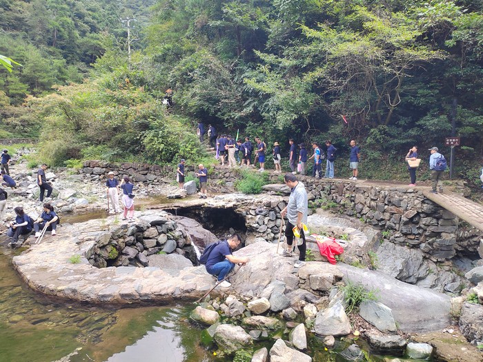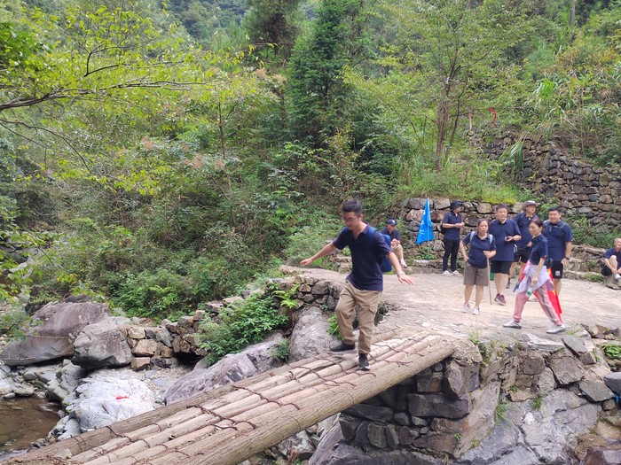 休整一晚後,第二天一早我們便乘車來到了徽杭古道的起點。徽杭古道蜿蜒于崇山峻嶺之間,猶如一條曆史的紐帶,連接着過去與未來。當我們踏上這片古老的土地時,心中都充滿了期待與挑戰。從起點出發,大家邁着堅定的步伐,眼神中透露出對未知旅程的好奇與勇敢。