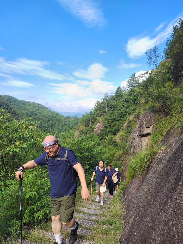 一路上,風景如畫,山巒起伏,綠樹成蔭。但毅行的道路并非一帆風順,陡峭的山坡、崎岖的小路,都給大家帶來了不小的挑戰。然而,正是在這些困難面前,團隊合作精神開始閃耀出最耀眼的光芒。面對艱險的山路,團隊成員沒有人掉隊。無論是在前方沖鋒的領隊,還是默默陪伴在後方的同事,大家都展現了無私的合作精神。有的同事主動幫助他人背負物品,有的在攀登時伸出援手,相互鼓勵,團結一心。當有同事體力不支時,旁邊的人立刻伸出援手,攙扶着他們繼續前行。一句句鼓勵的話語,如溫暖的春風,吹拂着每個人的心靈。“加油,我們一起走!”“堅持就是勝利!”這些簡單而有力的話語,成爲了大家前進的動力。